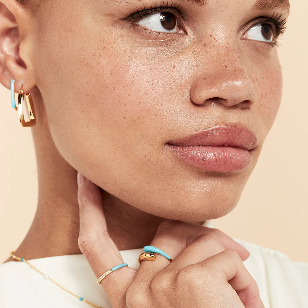 These Alana Sleepers are the perfect everyday earrings, with a pop of colour. Made with a rectangular hoop and an enamel coating down the front, they offer a stylish look.